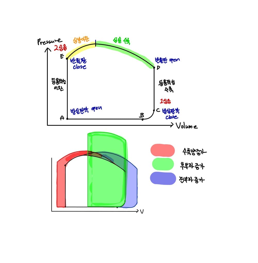 2. 압력 - 부피 곡선 (graph): 문제에서 주어졌을때 각 구간을 해석하는 능력이 있어야 합니다.