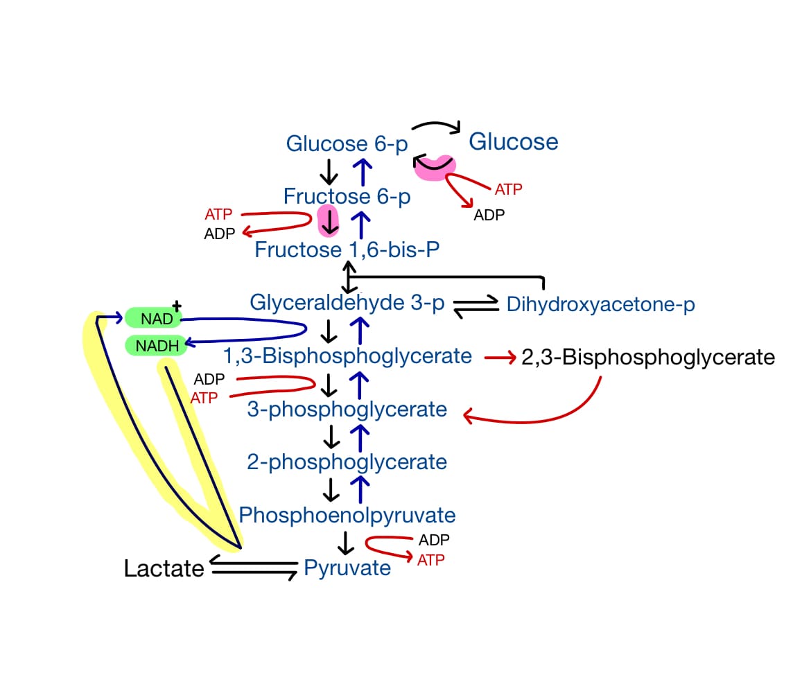 Fructose-6-P → Fructose-1,6 bisphosphate